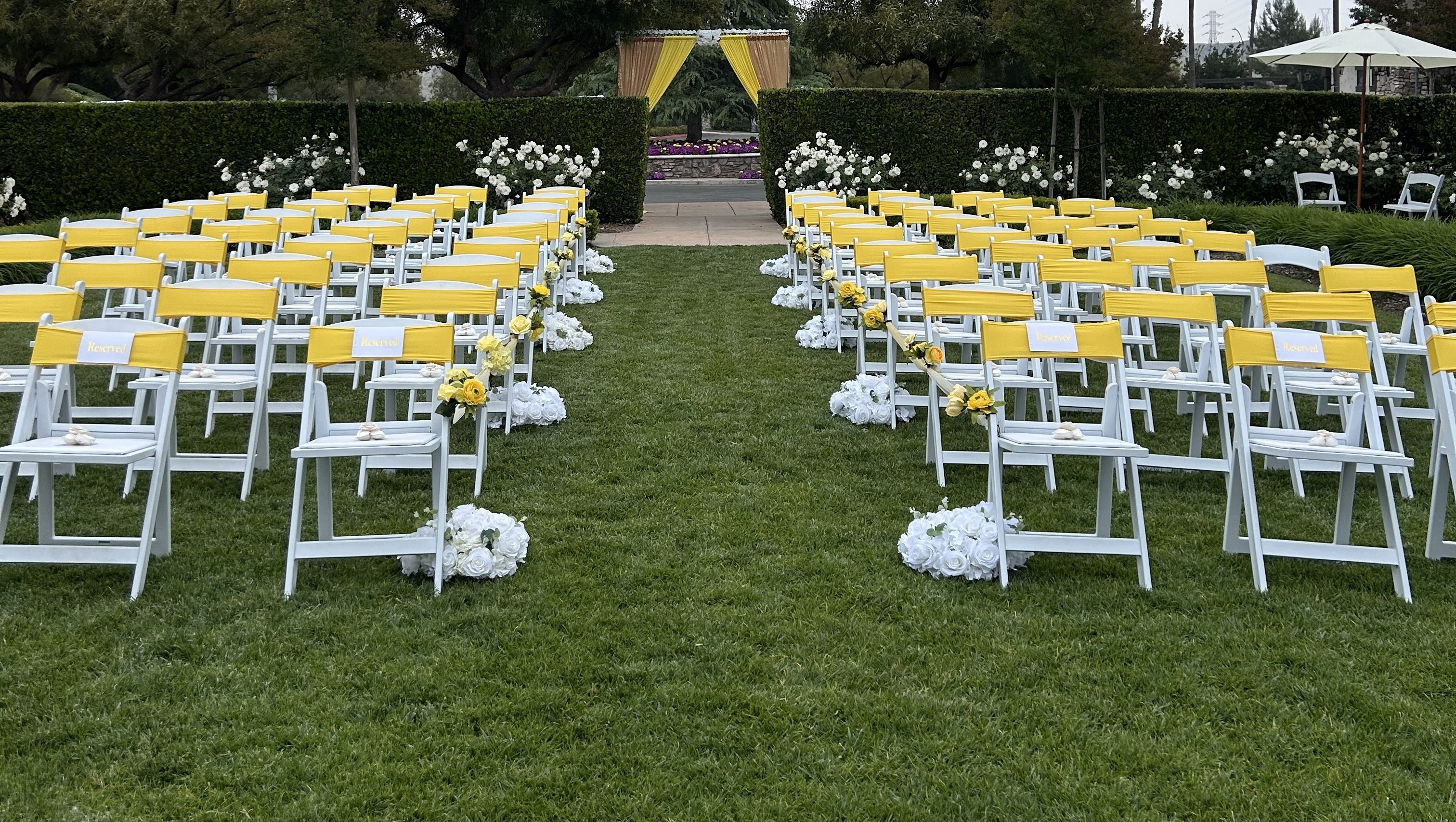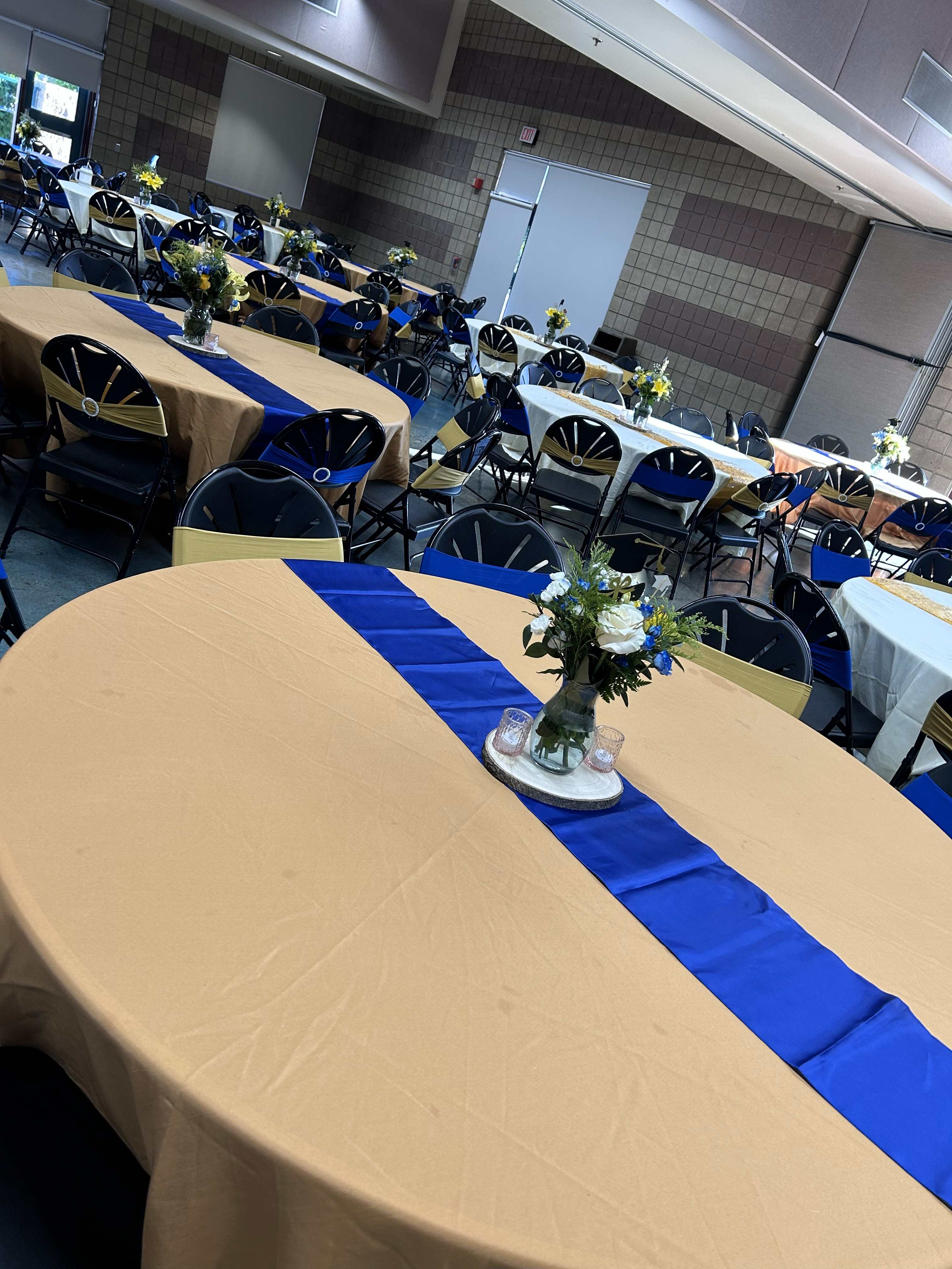 Linens, centerpieces, chair covers, chair-sashes