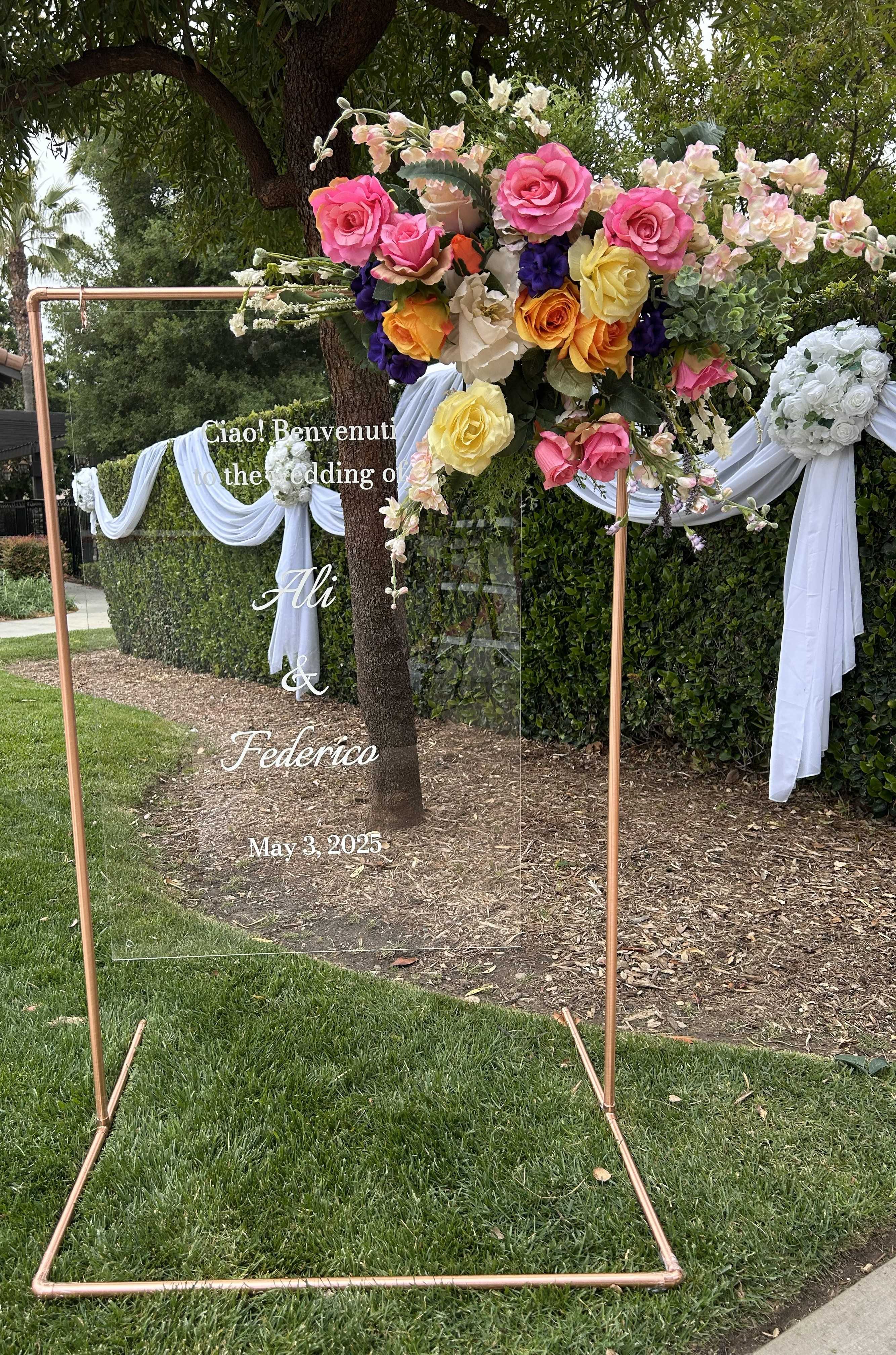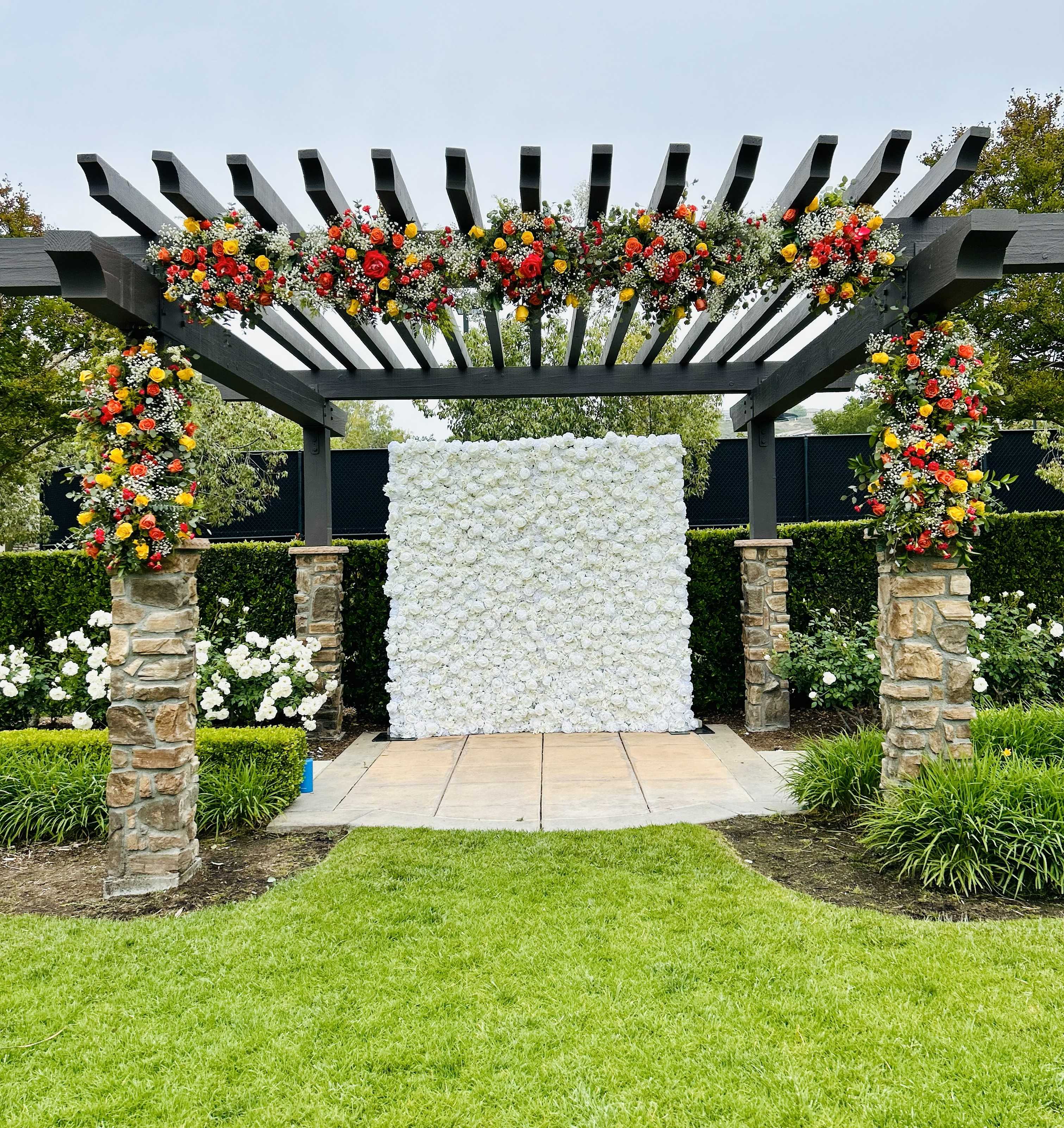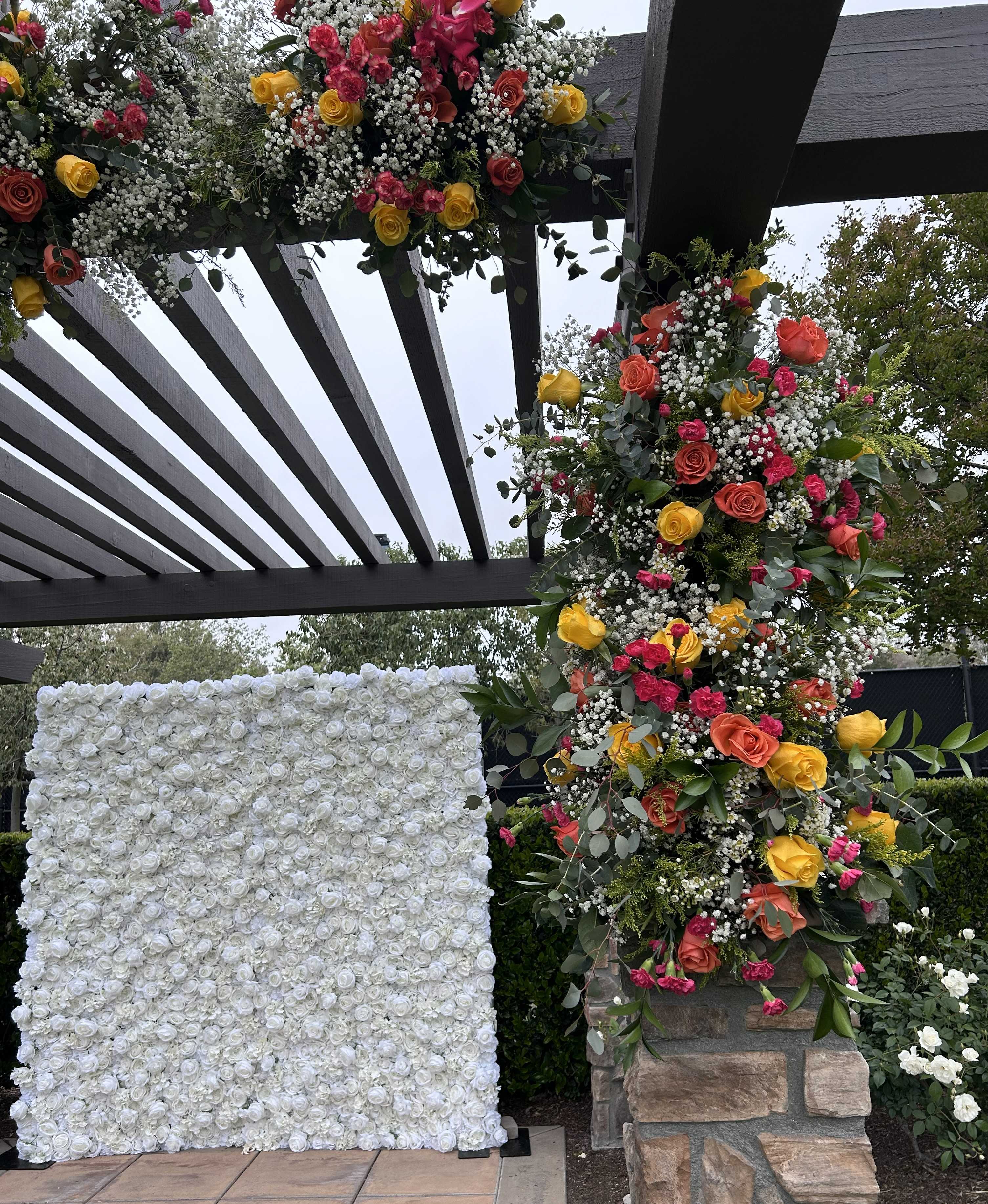 Custom photo backdrops and floral arches.